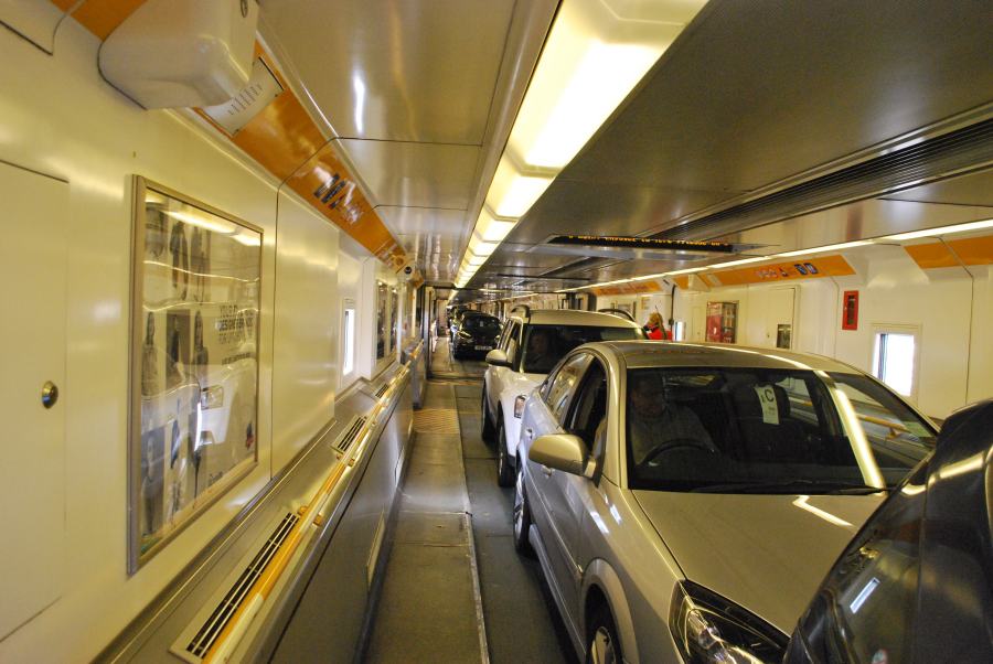 Cars on Channel Tunnel Train- now travelling at 80 miles/hour