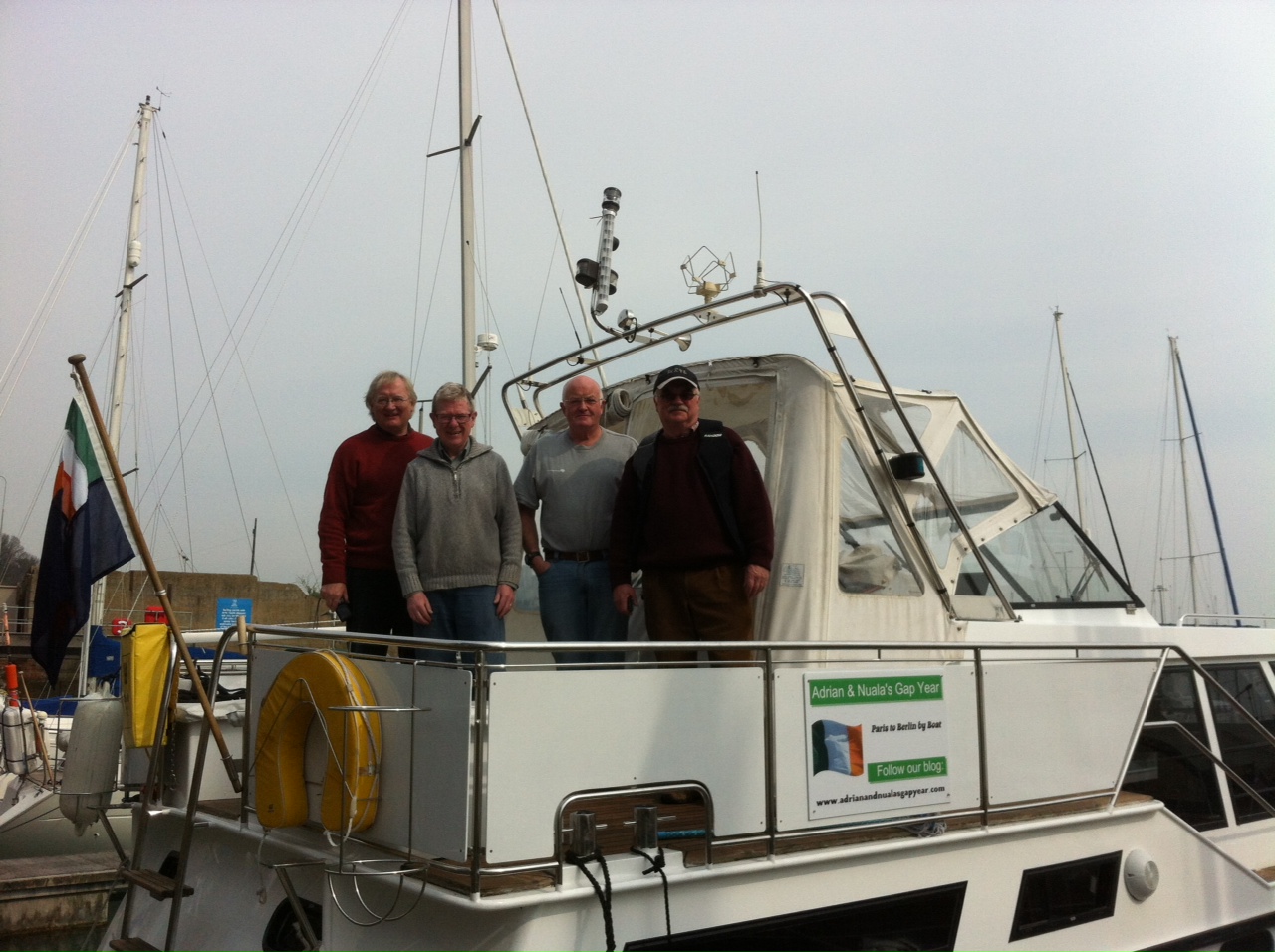 It was panned that Bill & Michael would not come until the day after I had put the boat in the water in case we had any delays. Everything went exactly to plan. Except when I went to pay the bill for lifting in the boat off the truck and into the water in the Marina office last night, something went wrong with my credit card payment. The card was declined and the operator had to process the payment manually. When he went to print off the receipt he went white and said “Oh my God” and then admitted that by mistake he had charged £ 1,480,000 to my credit card instead of £148. I could not believe the credit card company had passed the payment. It took 40 minutes of phone call to Dublin to reverse the payment. We joked that we would take the marina in exchange or if he refunded the money in cash we would give him 5%!!