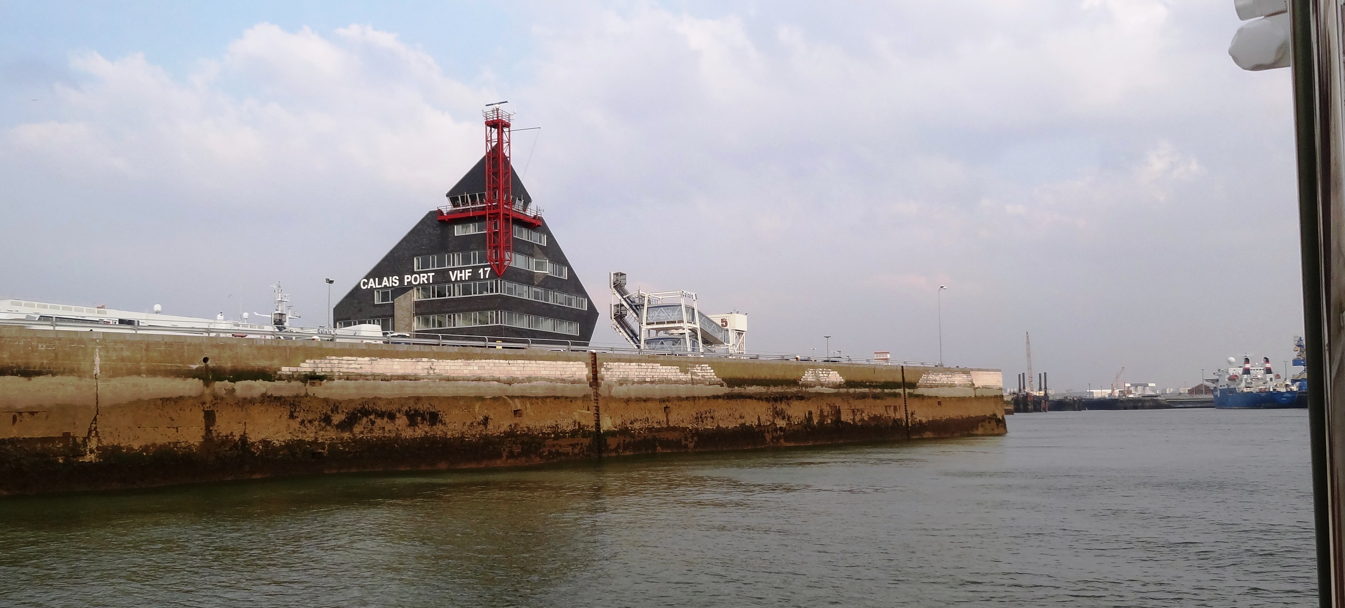 On arrival into Calais I called Port Control, who having checked our speed gave us permission to enter the port after a large car ferry. Another car ferry arrived in the outer channel and he changed his mind and asked us to wait. I misunderstood what he said and thought that he had told us to keep going and to follow the first car ferry but Neil and Michael thought he had said to wait until after the second. So I called him back for clarification. I thought he confirmed that we should keep coming so we did. (His English was better than my French but neither good enough!).