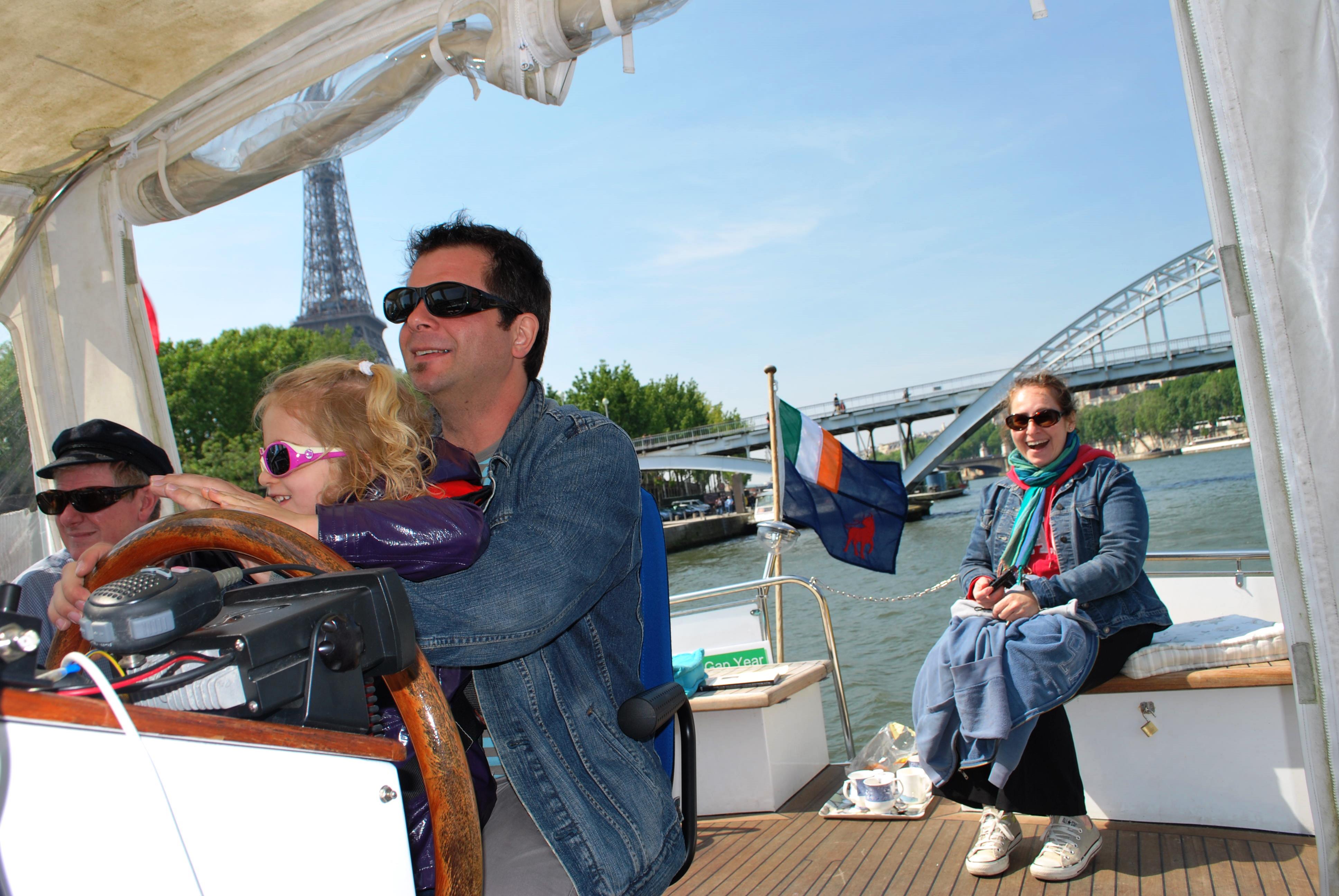 We re-visited the Seine in our own boat on Sunday, from the Arsenal Marina to the Eiffel Tower. Bruno from the SVP International Paris office , Mari Carmen his wife and daughter Emma came along for the trip. Having Parisians who had never been on the Seine in a boat and loved the trip made the journey all the more enjoyable for us.