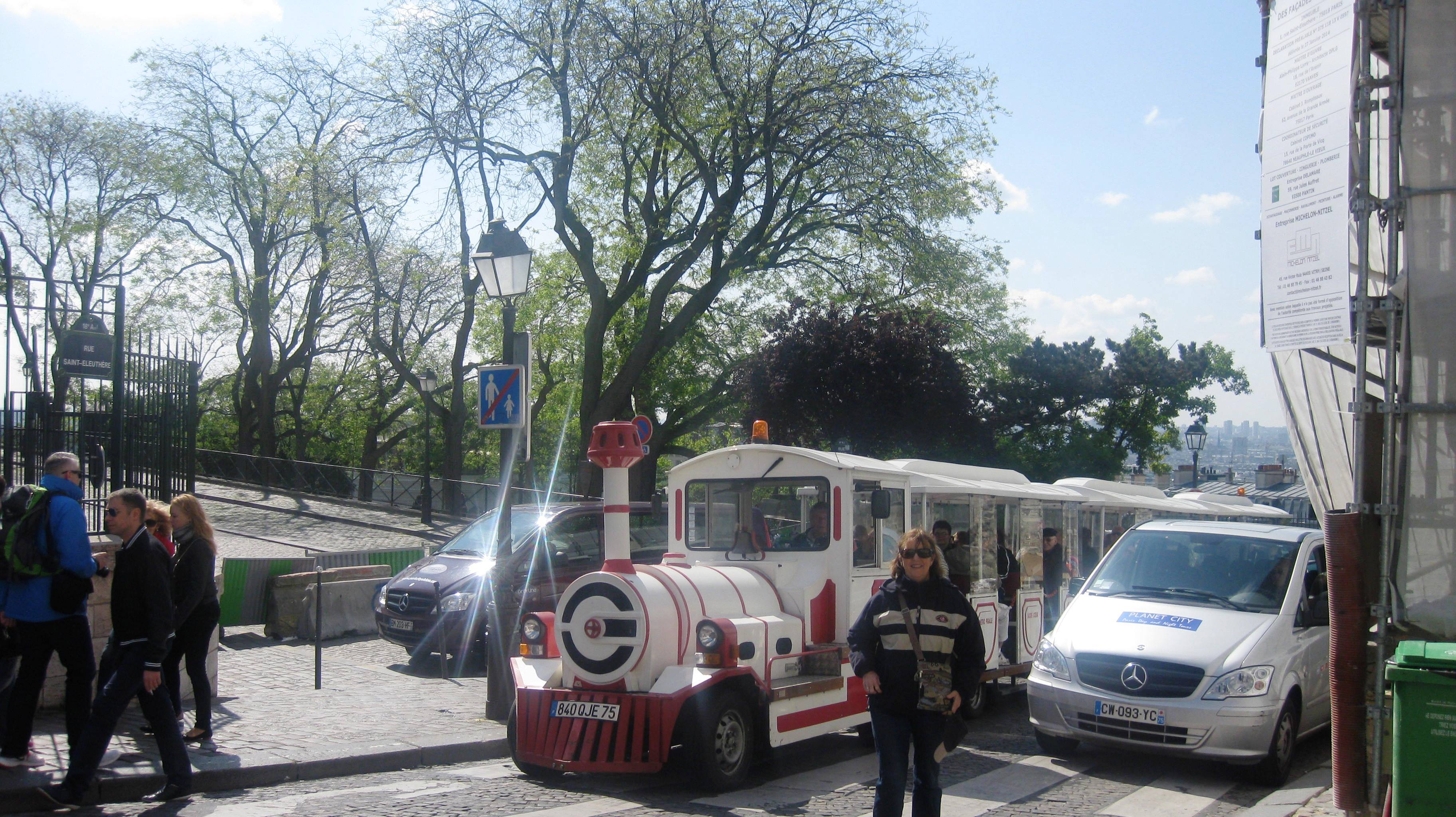 I was exhausted by the time we got back to the boat that evening . My feet were killing me! The next day was back to sightseeing (or so I thought). Off we went to Montmartre and went on a tourist train ride up to the top of the hills. When we came down I had the great idea to save money. Why not have a picnic in the little park in the middle of Montmartre ? Better still why not buy our sandwiches in Monoprix (cheaper again).