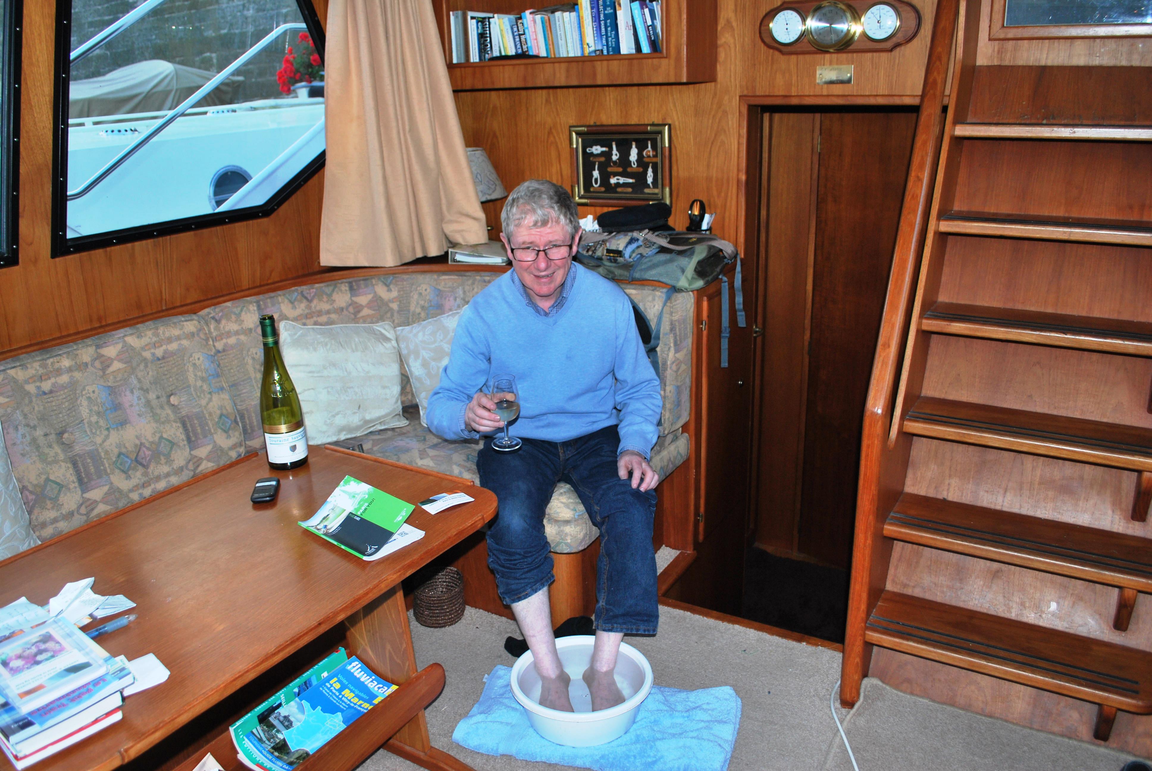 Are you sure Nuala didn’t buy that blouse in the Sex Shop? AND I notice you don’t comment on Adrian enjoying a glass of wine while he soaks his tired feet!