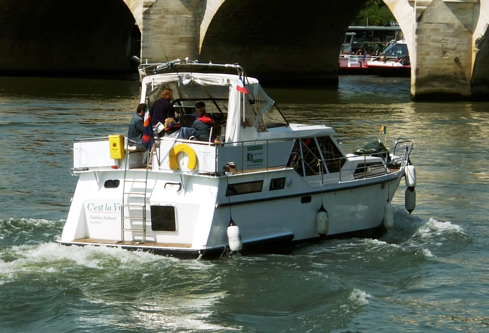 He then went on to tell me about an amazing coincidence. He overheard one of his colleagues, Ivan Fox on Tuesday morning telling someone else about the great weekend that he had in Paris and that he has seen a small boat on the Seine. It was so unusual to see it among all the large tourist boats that he had taken a closer look and then realised it was flying an Irish Flag. He had taken some photos and was showing them to his colleagues. His wife Fiona had also signed up to the blog and left a message on it. His photos are the only photos we have of the boat moving on the water (we have to take all the other photos ourselves from the boat).