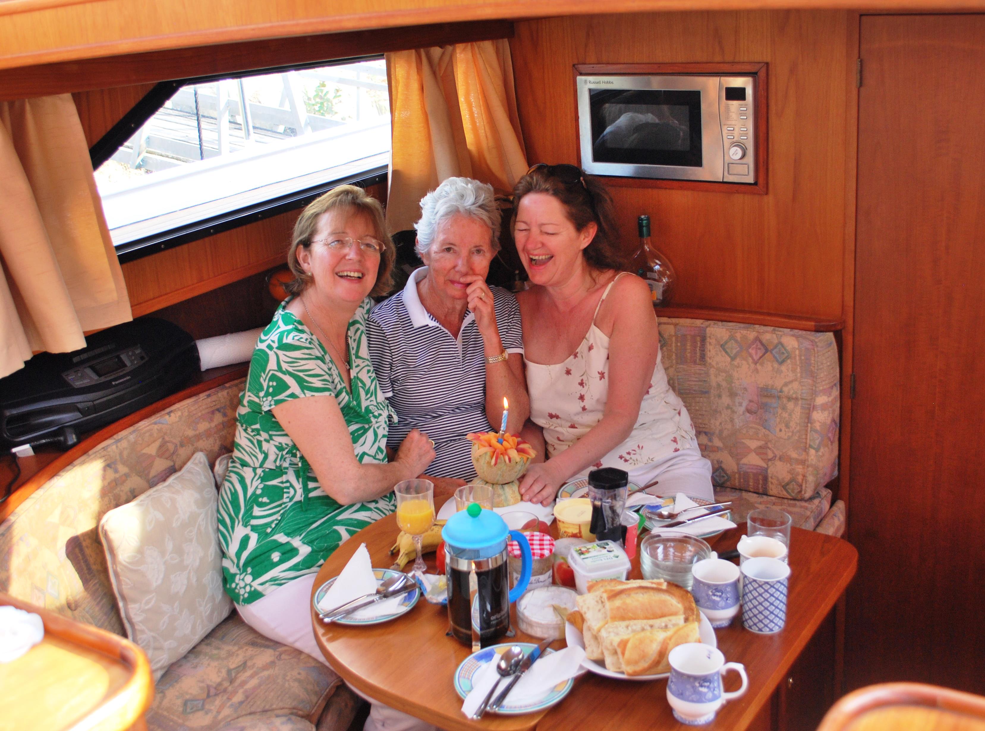 This week we travelled along the Marne River and Nuala’s mother, Aine and sister, Kate came to stay with us. They brought fantastic weather with them, the hottest we have had so far! We really enjoyed this section of the journey. They came because it was Nuala’s birthday this week.