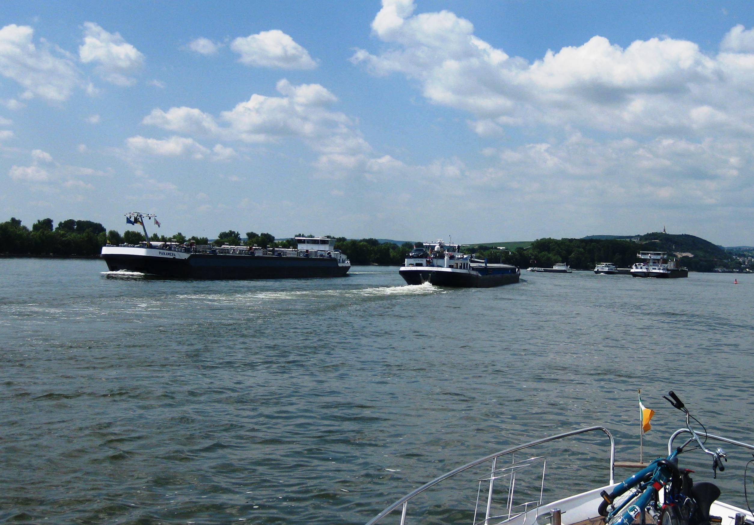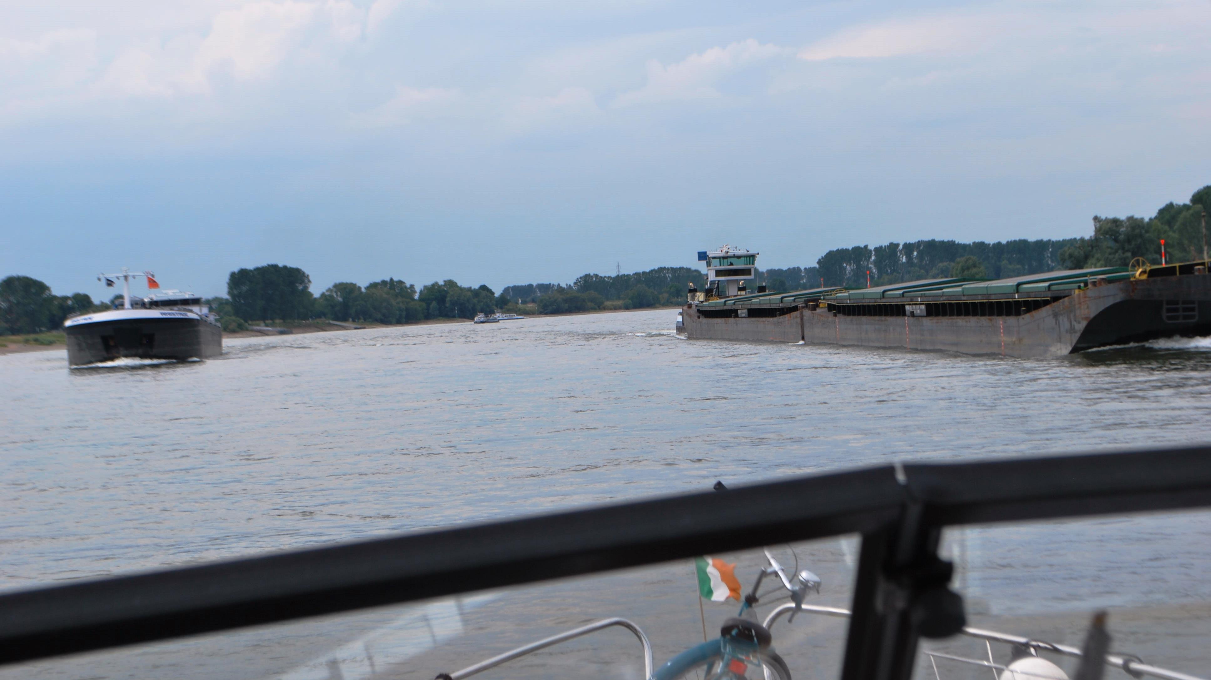 So we set off with some trepidation from Schierstein (near Mainz). The river did indeed speed up and soon we were doing record speeds of 17km per hour (our normal speed being 10 km). You could really feel the currents pulling the boat off course. There was very heavy commercial traffic as well and if we were going fast, then the barges over taking us were going even faster, doing 20 km per hour.