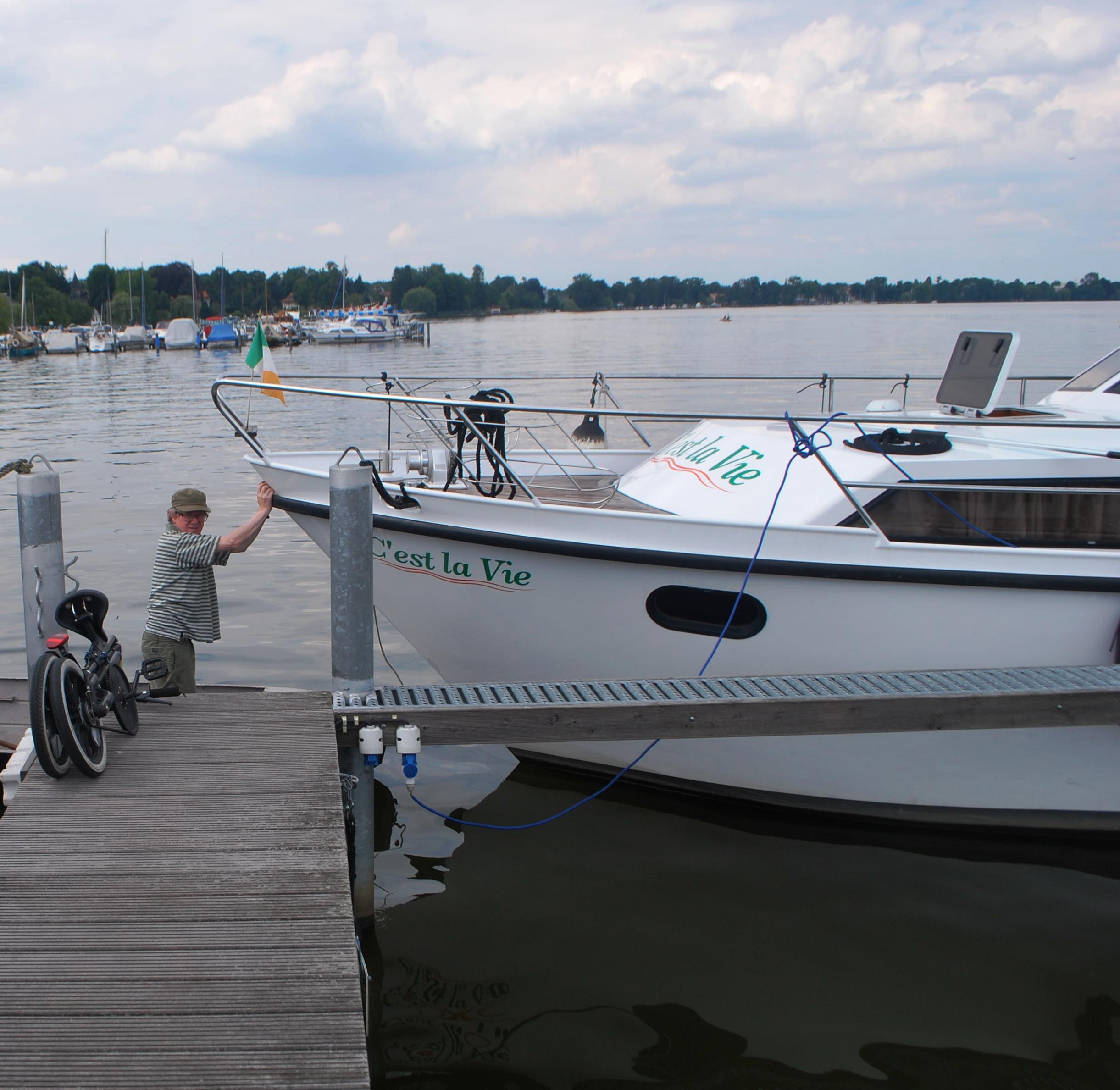We continue to stay at Boothaus Roll on the Zeuthern See and the weather has been very mixed. We have had glorious sunshine one day and thunderstorms and hail stones the next. We have spent the time cleaning the boat and getting ready to go home for “holidays”.