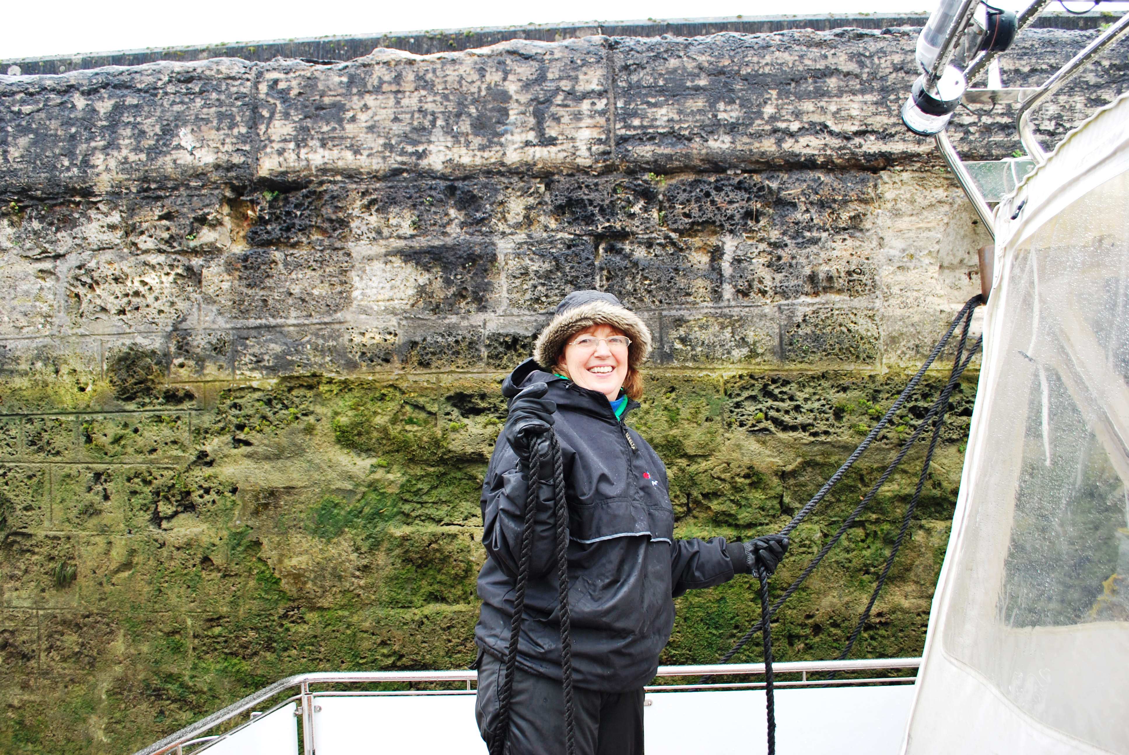Nuala rang the lock keeper as there was no sign of the gates opening. He firstly told Nuala that the locks did not open until 9 am (a big shock to us as having spent the last four months on highly used large commercial waterways of Germany and France where locks are open 23 hours a day, we had forgotten the restricted hours and more leisurely pace on small less commercial waterways). The lock keeper was equally surprised to hear that there was a barge sitting outside the lock.
