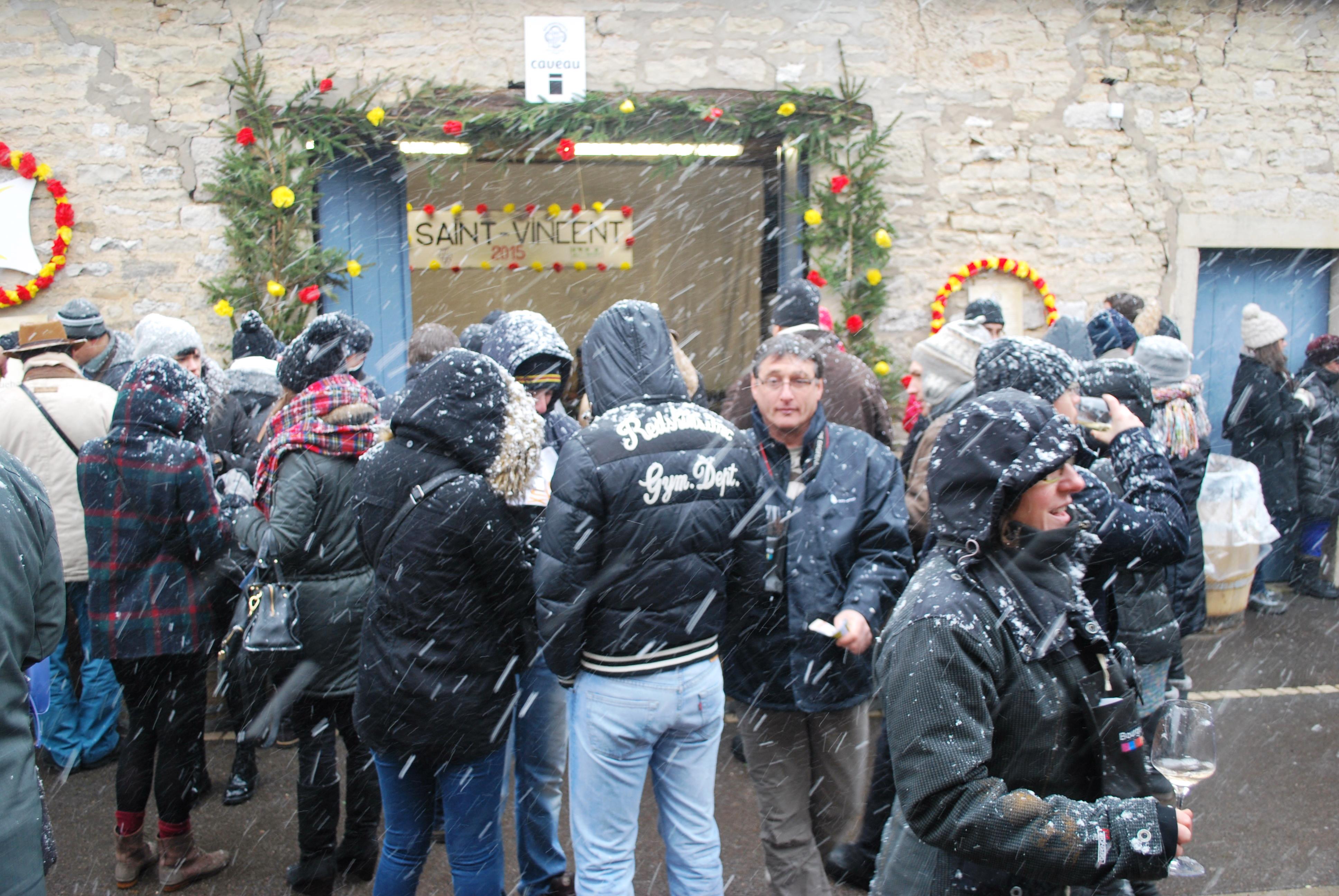 Word of warning you need to wrap up well. It was bitterly cold and it snowed during the day. Because of the weather the red wines were served too cold and you could not appreciate their full quality. It was a long day as we did not leave until 5.00 pm. Anybody who gets a chance to attend this festival should. It’s a very special Burgundy event, we really enjoyed it and Nuala was delighted with the snow!