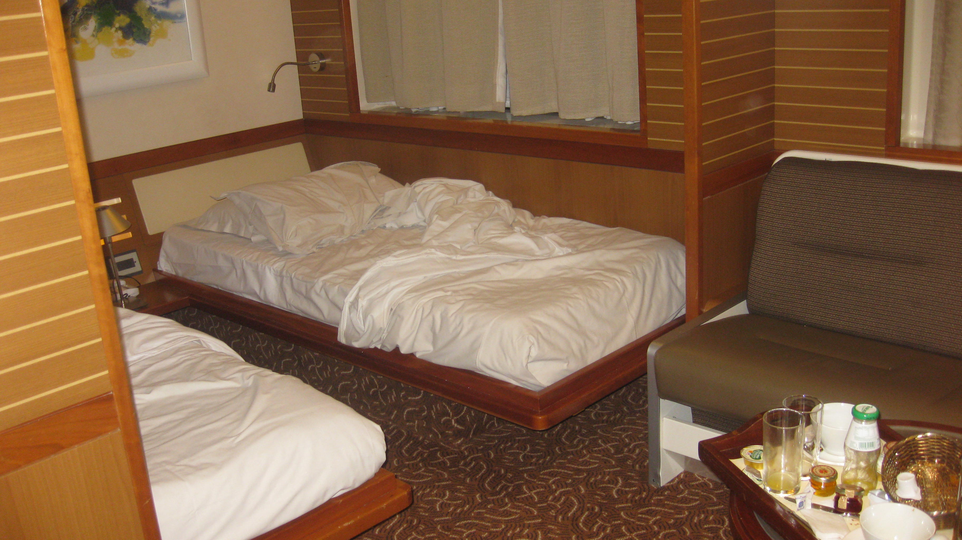 The night crossing was smooth. Because as Nuala gets sea sick she asked if we could book a deluxe cabin on the upper decks. This turned out to be a good decision both financially and economically as we got a great night’s sleep, I bought a bottle of wine in the duty free and had a drink in the room (there were signs up in the shop saying not to drink duty free on board) and breakfast in the cabin was included. So we arrived fresh and fed in Portsmouth at 7.00 am.