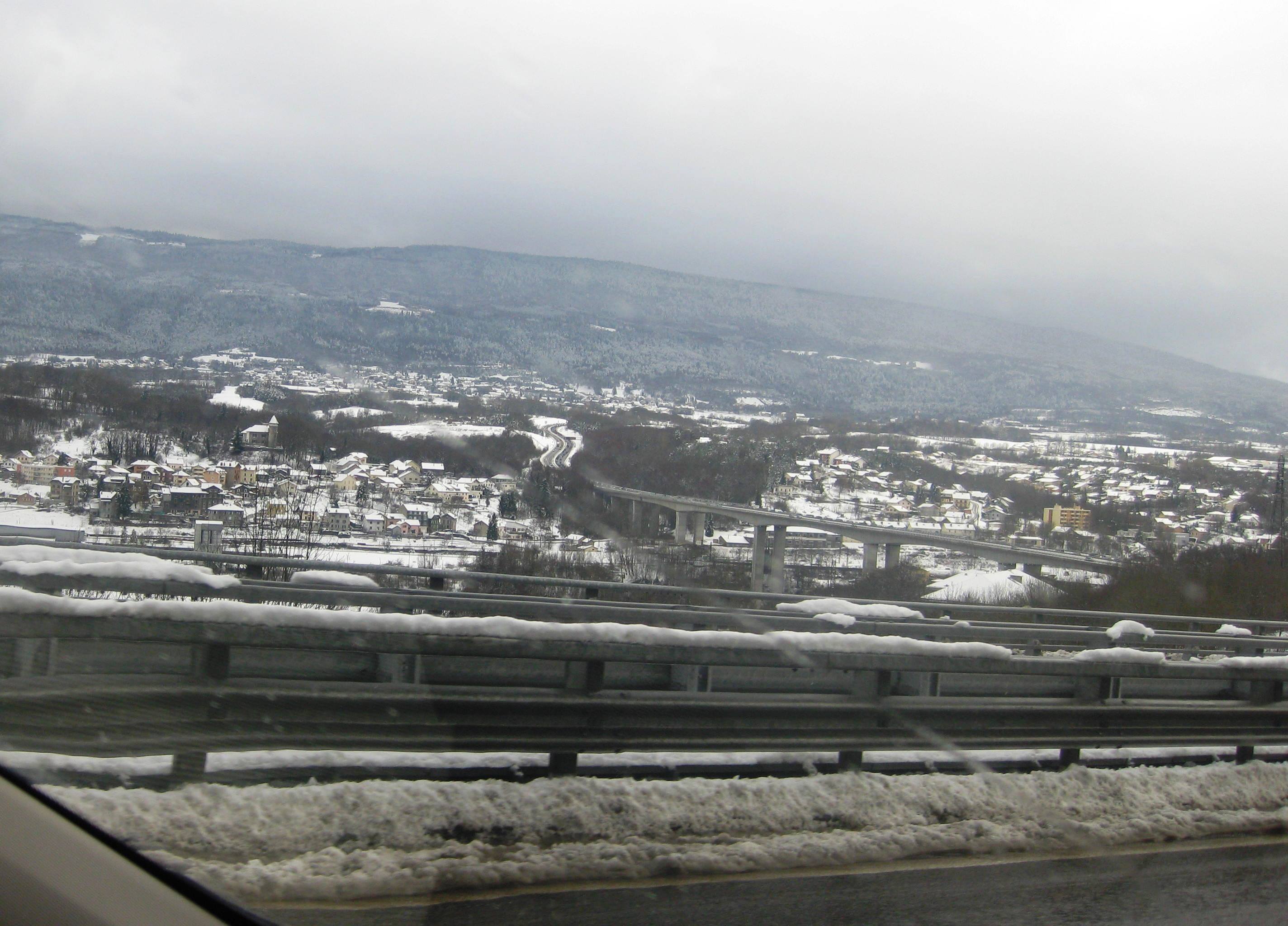 Snow on the Alps – on motorway back from Geneva